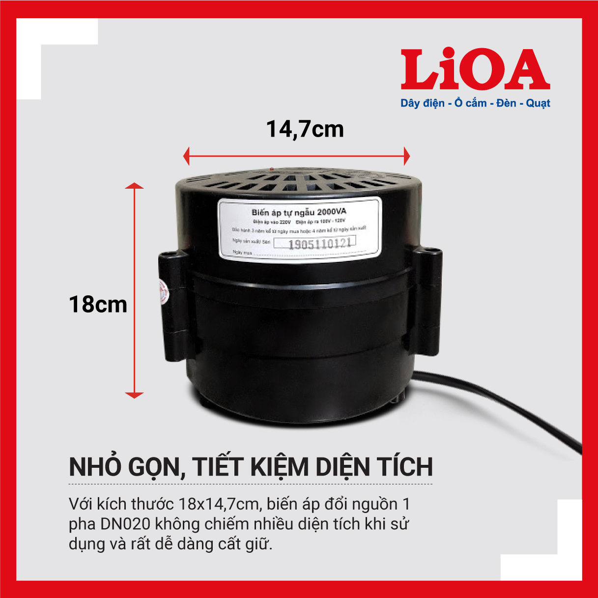 Thông số kỹ thuật Biến Áp Đổi Nguồn Hạ Áp 2KVA DN020 LiOA 1 Pha :