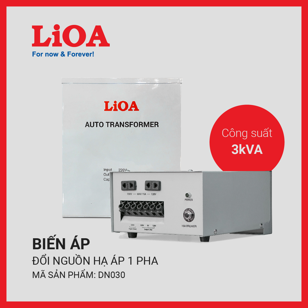 Thông số kỹ thuật Biến Áp Đổi Nguồn Hạ Áp 3KVA DN030 LiOA 1 Pha: