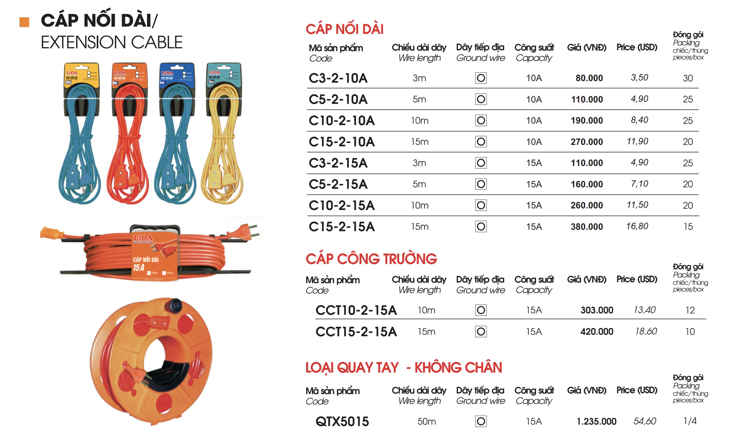 Cáp nối dài LiOA 10A là sản phẩm thuộc dòng ổ cắm kéo dài, được sử dụng để kéo dài nguồn điện, có thể là 3m hoặc 5m, 10m, 15m tùy theo nhu cầu của người sử dụng.
