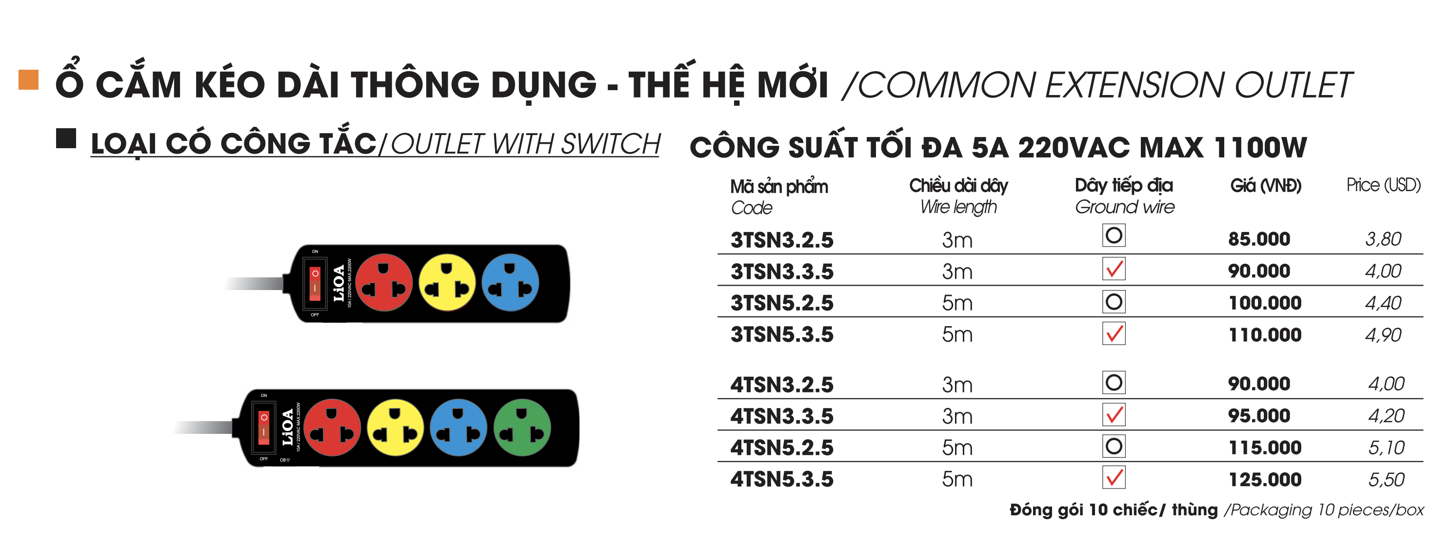 Thông số kỹ thuật Ổ cắm kéo dài thông dụng LiOA 4TSN5.2.5: