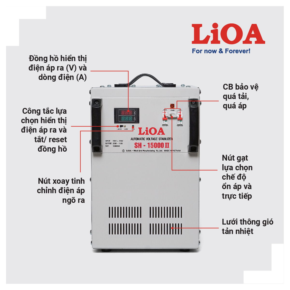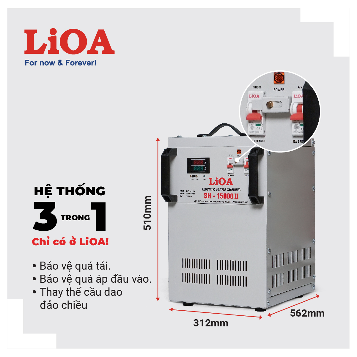 [•] ƯU ĐIỂM VƯỢT TRỘI ỔN ÁP LIOA 15KVA SH-15000II (150v-250v) 1 PHA: