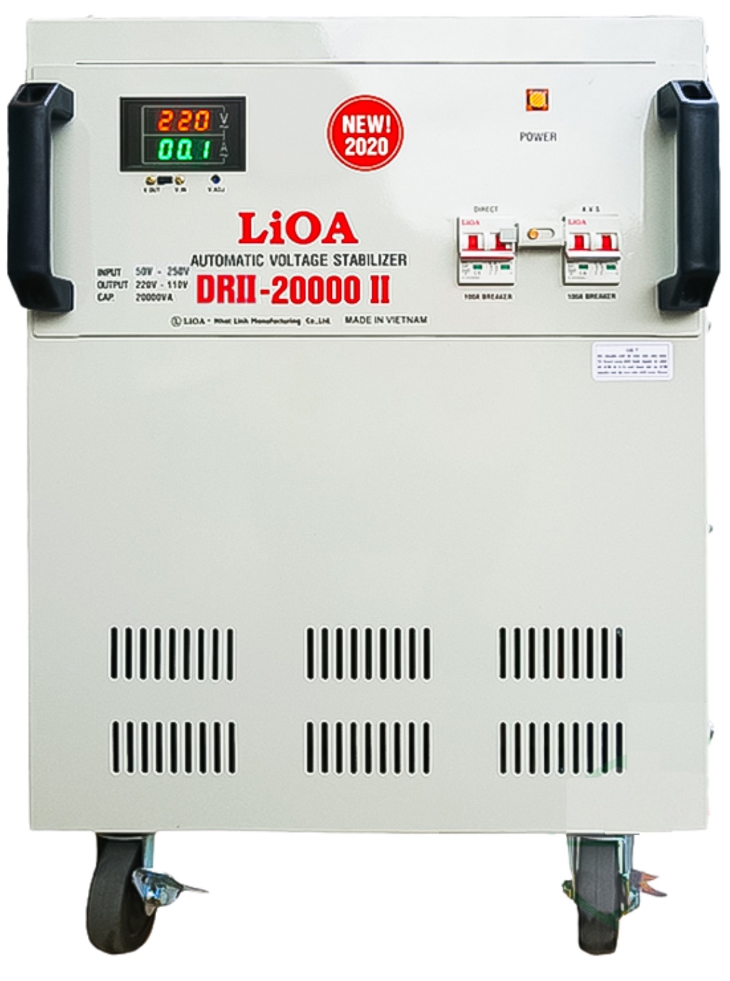 Ổn áp LiOA 20KVA DRII-20000II (50v-250v) 1 Pha Được trang bị đồng hồ LED hiển thị dòng điện Vol & Ampe có độ chính xác cao hơn so với sản phẩm đồng hồ cơ ở các phiên bản trước đây