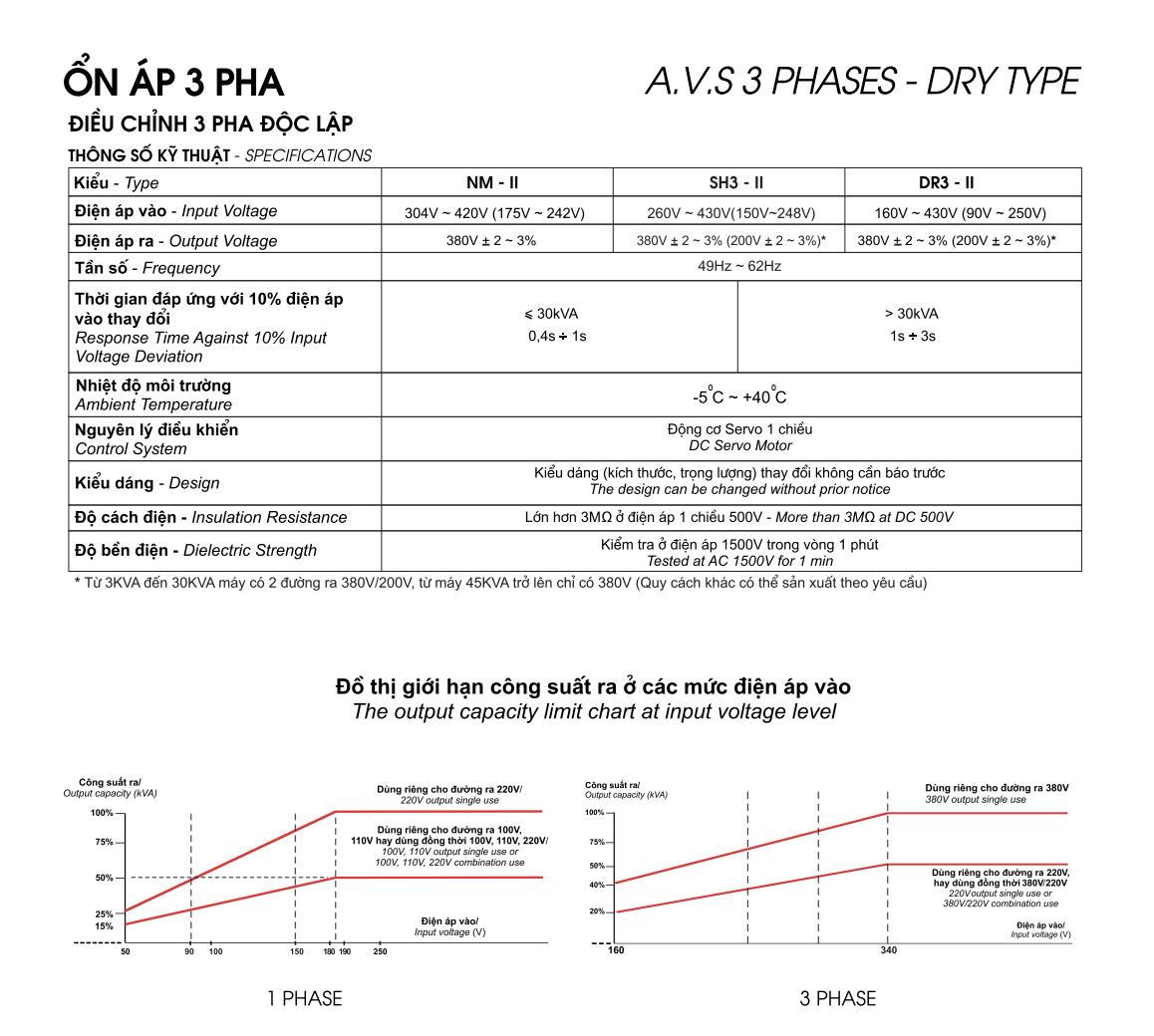 - Dải điện áp: 260V-430V.