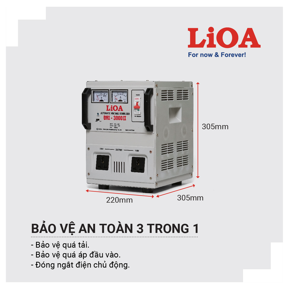 [•] ƯU ĐIỂM VƯỢT TRỘI ỔN ÁP LIOA 3KVA DRI-3000II (90-250v) 1 PHA: