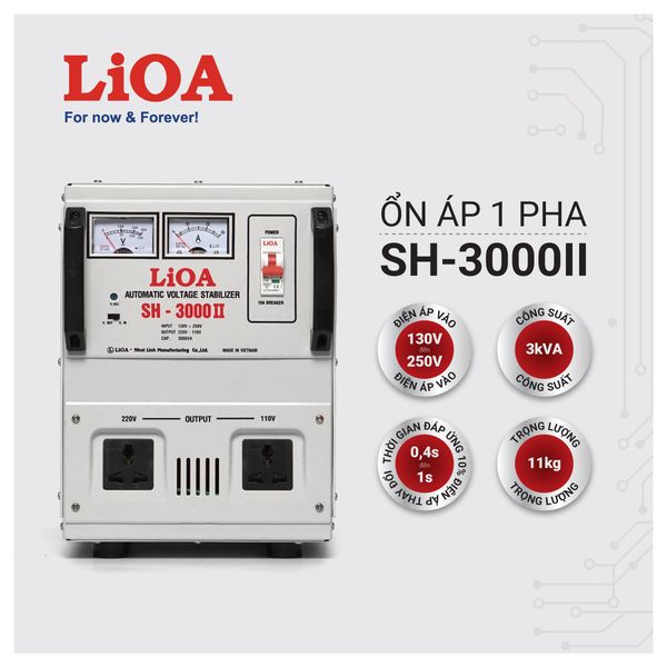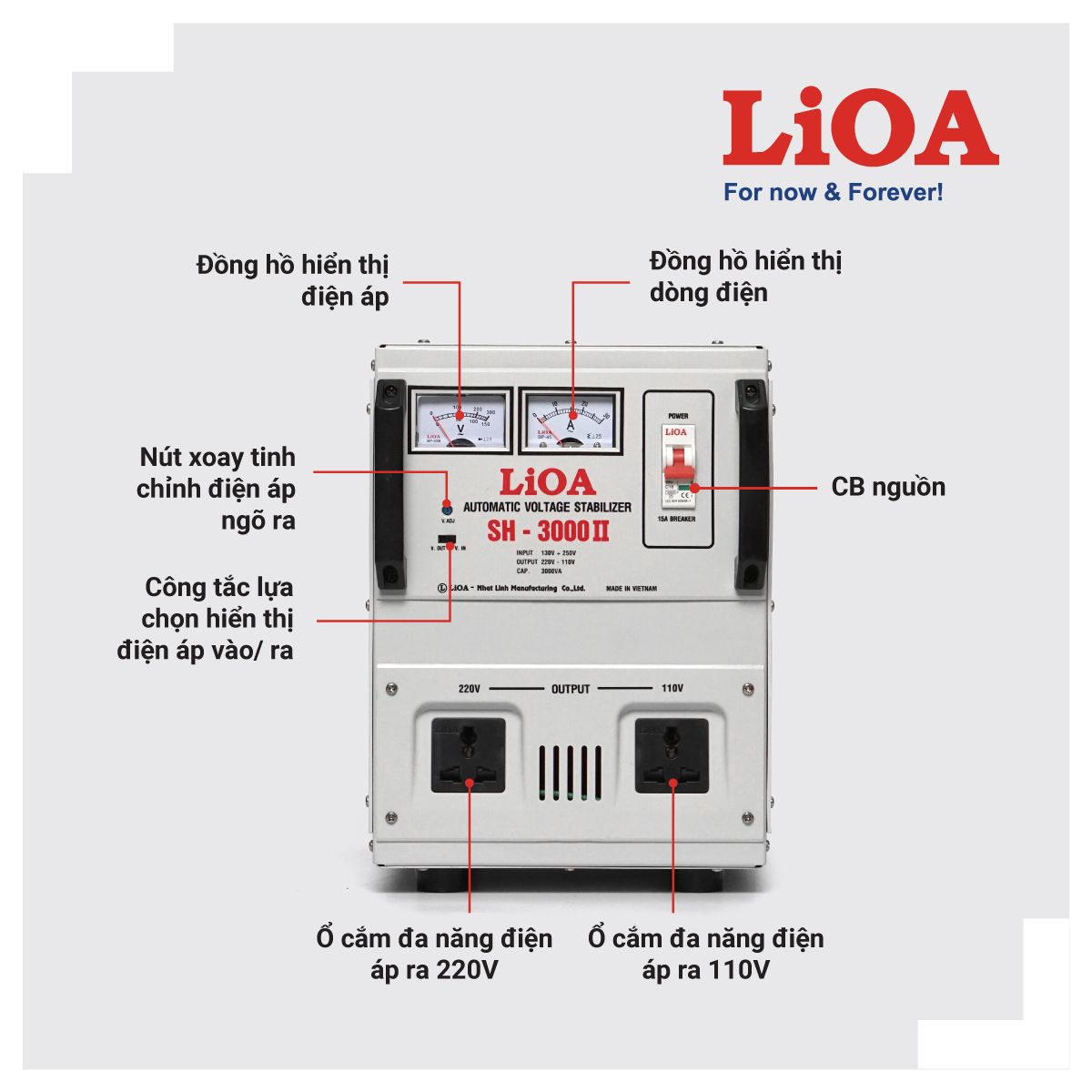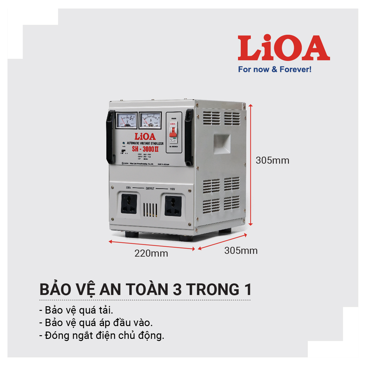 [•] ƯU ĐIỂM VƯỢT TRỘI ỔN ÁP LIOA 3KVA SH-3000II (130-250v) 1 PHA: