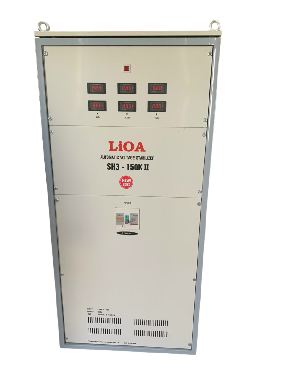 Ổn áp LiOA SH3-150KII 3 Pha (260v-430v) - Đồng hồ điện tử chỉ có dải điện áp vào 260v ~ 430v hoặc 304 ~ 420v không có điện áp vào dải rộng 160v ~ 430v như các loại máy có công xuất từ 100kva trở xuống
