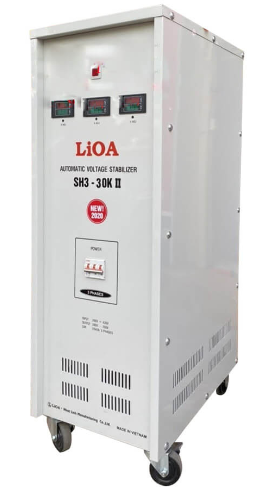 Ổn áp LiOA SH3-30KII 3 Pha (260v-430v) - Đồng hồ điện tử thiết kế kiếu dáng công nghiệp, thích hợp với những nguồn lưới điện trong khoảng từ 260V đến 430V/pha. Ổn áp LiOA SH3-30KII 3 Pha (260v-430v) - Đồng hồ điện tử hoạt động theo nguyên lý điều chỉnh động cơ giúp dòng điện ổn định liên tục. Máy ổn áp tích hợp 3 chức năng: bảo vệ quá tải, bảo vệ quá áp đầu vào, đóng ngắt điện chủ động.
